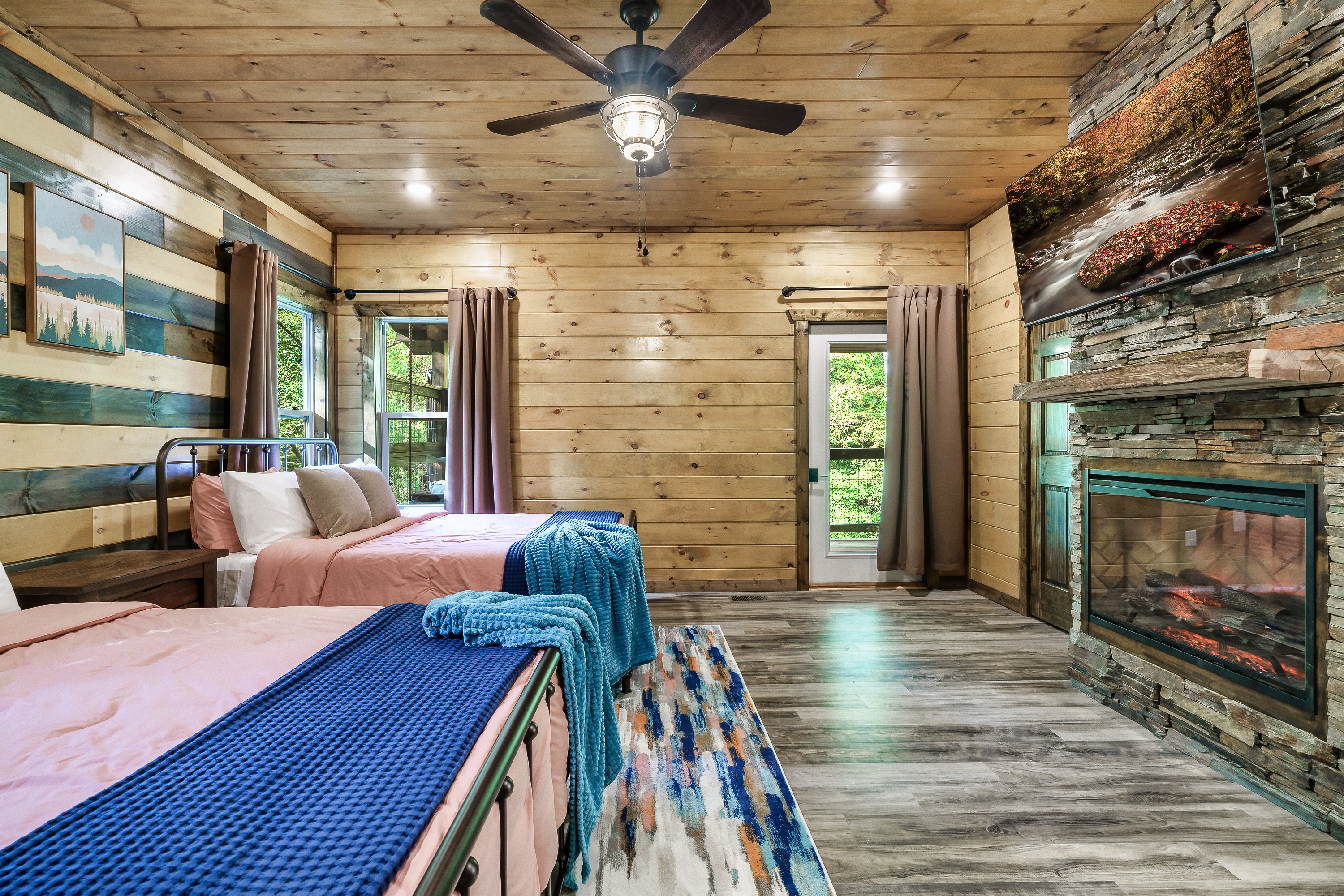 ➡ Bedroom 1 (Main Floor): 2 Queen-Size Beds, fireplace and luxurious en-suite bath